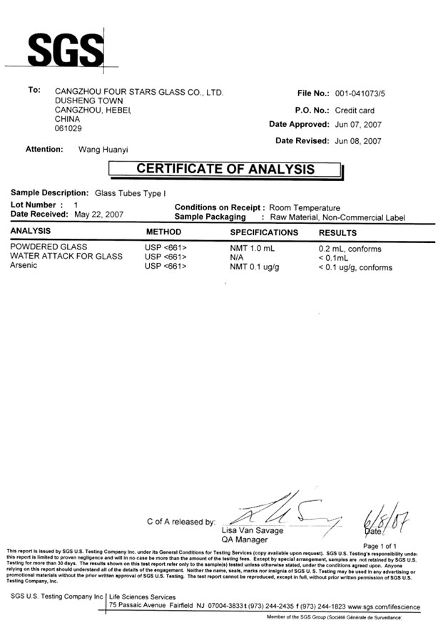 ISO國際標(biāo)準(zhǔn),玻璃管顆粒法耐水I級為耗酸量小于1ML,國際同行業(yè)的數(shù)值是0.35ML,而我們是0.2ML(數(shù)值越小質(zhì)量越好),此項技術(shù)已經(jīng)獲得了美國權(quán)威檢測機構(gòu)SGS的檢測證書,此產(chǎn)品已經(jīng)達到國際先進水平。