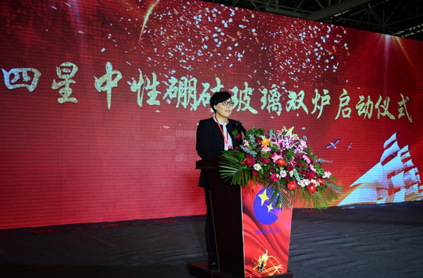 5號(hào)窯爐采用的是行業(yè)領(lǐng)先的“全電熔維洛法”熔化拉管技術(shù),實(shí)現(xiàn)了從配料到投料、從熔化到拉管、從檢測(cè)到包裝入庫(kù)的全過(guò)程智能化生產(chǎn)。基于四星公司十余年中性硼硅玻璃生產(chǎn)經(jīng)驗(yàn)的提煉與升華,5號(hào)中性硼硅玻璃窯爐集合了第一、二、三、四座窯爐的精華,規(guī)避了原有窯爐的不足,其熔化質(zhì)量較前四座窯爐更具優(yōu)勢(shì),玻管顏色比以前也會(huì)有很大的提升與改進(jìn),完全能夠滿足高端客戶(hù)的特殊需求。并且,能夠多元化生產(chǎn)各品規(guī)、多用途的中性硼硅玻璃制品。 作為中國(guó)醫(yī)藥包裝協(xié)會(huì)推薦認(rèn)可的國(guó)內(nèi)藥用玻璃包裝制造領(lǐng)域領(lǐng)軍企業(yè),四星公司也是擁有完全知識(shí)產(chǎn)權(quán),全部采用自有技術(shù),能規(guī);可a(chǎn)藥用中性硼硅玻璃的高新技術(shù)企業(yè)。如今,5號(hào)窯爐的成功點(diǎn)火對(duì)于四星公司意義重大,意味著四星公司在醫(yī)藥包裝行業(yè)又邁上了一個(gè)新的臺(tái)階。 本次項(xiàng)目啟動(dòng)由滄州高新區(qū)黨工委書(shū)記、管委會(huì)主任夏軍主持并講話。 河北省工業(yè)和信息化廳黨組書(shū)記、廳長(zhǎng)龔曉峰,國(guó)家工信部原材料司建材處石琳,國(guó)家食品藥品監(jiān)督管理局原副局長(zhǎng)張文周,中國(guó)醫(yī)藥包裝協(xié)會(huì)會(huì)長(zhǎng)蔡弘,中國(guó)醫(yī)藥管理協(xié)會(huì)會(huì)長(zhǎng)郭云沛,中國(guó)輕工業(yè)信息中心玻璃技術(shù)信息交流委員會(huì)張守和,中國(guó)生化制藥工業(yè)協(xié)會(huì)常務(wù)副會(huì)長(zhǎng)胡文言,河北省醫(yī)藥協(xié)會(huì)會(huì)長(zhǎng)劉驍悍,滄州市人民政府副市長(zhǎng)尹衛(wèi)江,滄州市工信局局長(zhǎng)時(shí)金青,滄州市發(fā)改委副主任張國(guó)慶,滄州市科技局局長(zhǎng)桑金歌等領(lǐng)導(dǎo)出席,滄州四星玻璃的客戶(hù)代表及企業(yè)員工代表共同參加了本次項(xiàng)目的啟動(dòng)活動(dòng)。河北省工信廳,滄州市人民政府,滄州市高新技術(shù)開(kāi)發(fā)區(qū)政府的領(lǐng)導(dǎo),行業(yè)協(xié)會(huì)領(lǐng)導(dǎo),四星玻璃董事長(zhǎng)為點(diǎn)火儀式致辭。